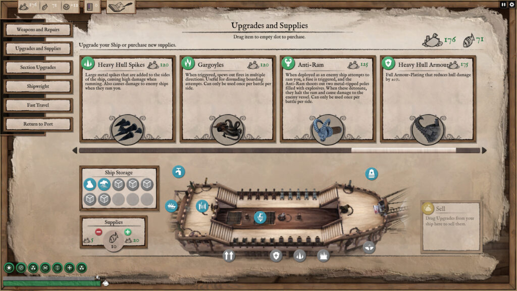 Die Kämpfe sind nämlich auch das Herzstück des Spiels und erinnern an FTL: Faster Than Light, aber natürlich mit dem ganz eigenen maritimen Twist. Ich kontrolliere meine Crewmitglieder direkt, lasse sie Kanonen bemannen, Feuer löschen, Reparaturen durchführen oder Feinde zermetzeln. Die Gefechte sind taktisch, fordernd und machen tatsächlich richtig Laune.
